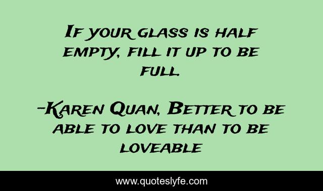 "Karen Quan, Better to be able to love than to be loveable Quotes." Quoteslyfe.com, 2025. Sat. 06 Dec. 2025. <https://www.quoteslyfe.com/quote/If-your-glass-is-half-empty-fill-178782>.