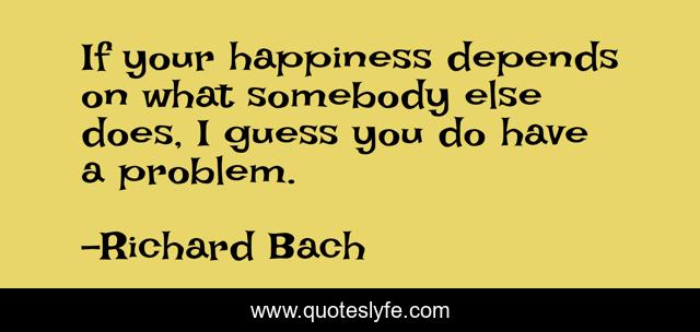 This page presents the quote "If your happiness depends on what somebody else does, I guess you do have a problem.". Author of this quote is Richard Bach. This quote is about problem, guess,.