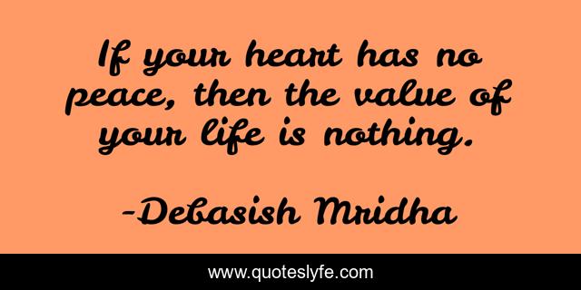This page presents the quote "If your heart has no peace, then the value of your life is nothing.". Author of this quote is Debasish Mridha. This quote is about value-of-your-life, peace, philosophy, debasish-mridha, no-peace, quotes, debasish-mridha-md, inspirational, enthusiasm,.