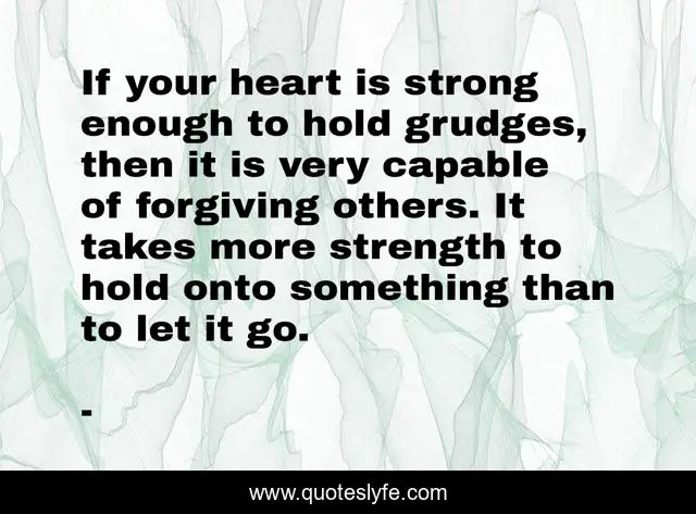 This page presents the quote "If your heart is strong enough to hold grudges, then it is very capable of forgiving others. It takes more strength to hold onto something than to let it go.". Author of this quote is . This quote is about edmond-mbiaka, having-grudges-in-life, holding-on-to-grudges, holding-on, forgiving-others, letting-go-of-your-grudges,.