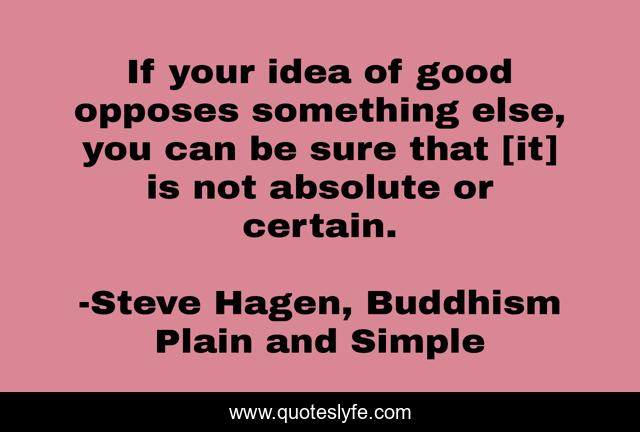This page presents the quote "If your idea of good opposes something else, you can be sure that [it] is not absolute or certain.". Author of this quote is Steve Hagen, Buddhism Plain and Simple. This quote is about zen, zen-buddhism,.