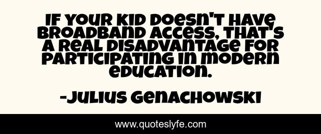 This page presents the quote "If your kid doesn't have broadband access, that's a real disadvantage for participating in modern education.". Author of this quote is Julius Genachowski. This quote is about real, modern, kid,.