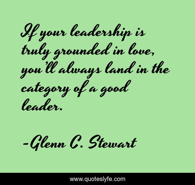 This page presents the quote "If your leadership is truly grounded in love, you’ll always land in the category of a good leader.". Author of this quote is Glenn C. Stewart. This quote is about leadership, leadership-traits,.