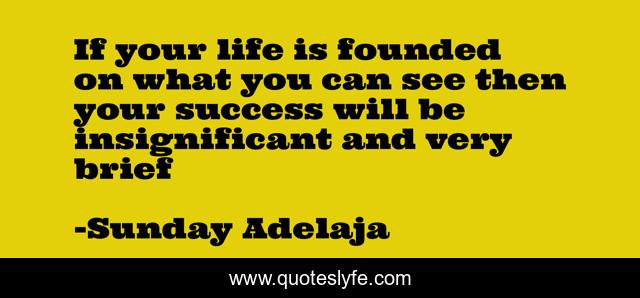 This page presents the quote "If your life is founded on what you can see then your success will be insignificant and very brief". Author of this quote is Sunday Adelaja. This quote is about found, life, brief, success, insignificant,.