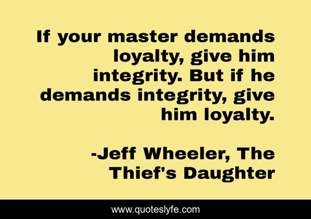 This page presents the quote "If your master demands loyalty, give him integrity. But if he demands integrity, give him loyalty.". Author of this quote is Jeff Wheeler, The Thief's Daughter. This quote is about integrity, loyalty,.