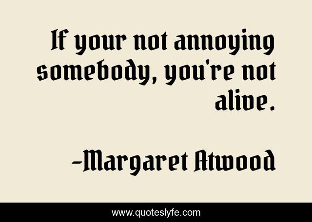 "Margaret Atwood Quotes." Quoteslyfe.com, 2025. Sat. 06 Dec. 2025. <https://www.quoteslyfe.com/quote/If-your-not-annoying-somebody-you-re-233342>.