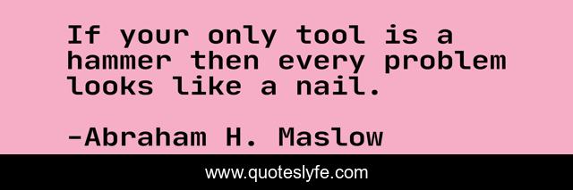 This page presents the quote "If your only tool is a hammer then every problem looks like a nail.". Author of this quote is Abraham H. Maslow. This quote is about problem-solving, creativity, vision,.