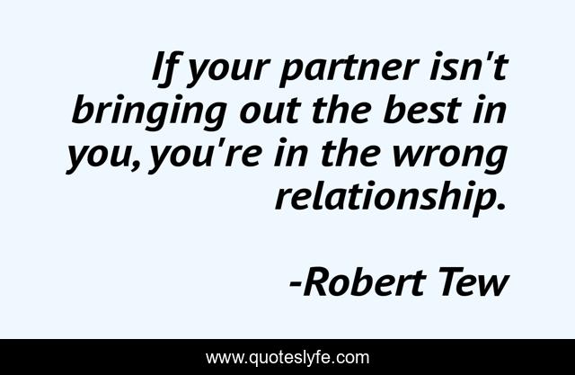 This page presents the quote "If your partner isn't bringing out the best in you, you're in the wrong relationship.". Author of this quote is Robert Tew. This quote is about love, relationship, affection,.