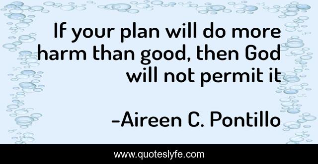 This page presents the quote "If your plan will do more harm than good, then God will not permit it". Author of this quote is Aireen C. Pontillo. This quote is about faith, life, plans, god, goodness, trust,.