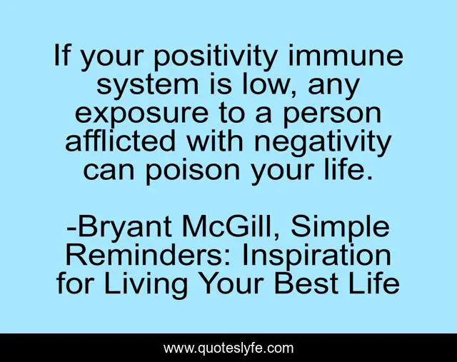 "Bryant McGill, Simple Reminders: Inspiration for Living Your Best Life Quotes." Quoteslyfe.com, 2025. Fri. 05 Dec. 2025. <https://www.quoteslyfe.com/quote/If-your-positivity-immune-system-is-low-198723>.