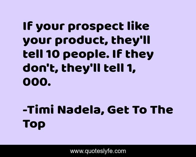 This page presents the quote "If your prospect like your product, they'll tell 10 people. If they don't, they'll tell 1, 000.". Author of this quote is Timi Nadela, Get To The Top. .