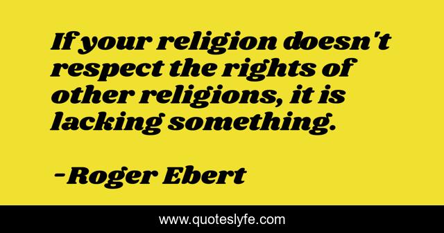 This page presents the quote "If your religion doesn't respect the rights of other religions, it is lacking something.". Author of this quote is Roger Ebert. This quote is about religion, rights, religions,.