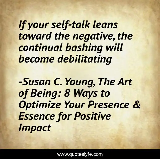 "Susan C. Young, The Art of Being: 8 Ways to Optimize Your Presence & Essence for Positive Impact Quotes." Quoteslyfe.com, 2025. Mon. 08 Dec. 2025. <https://www.quoteslyfe.com/quote/If-your-self-talk-leans-toward-the-199387>.