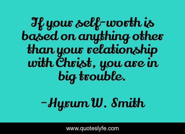 This page presents the quote "If your self-worth is based on anything other than your relationship with Christ, you are in big trouble.". Author of this quote is Hyrum W. Smith. This quote is about foundation, christ, self-worth,.