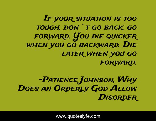 "Patience Johnson, Why Does an Orderly God Allow Disorder Quotes." Quoteslyfe.com, 2025. Mon. 08 Dec. 2025. <https://www.quoteslyfe.com/quote/If-your-situation-is-too-tough-don-83438>.