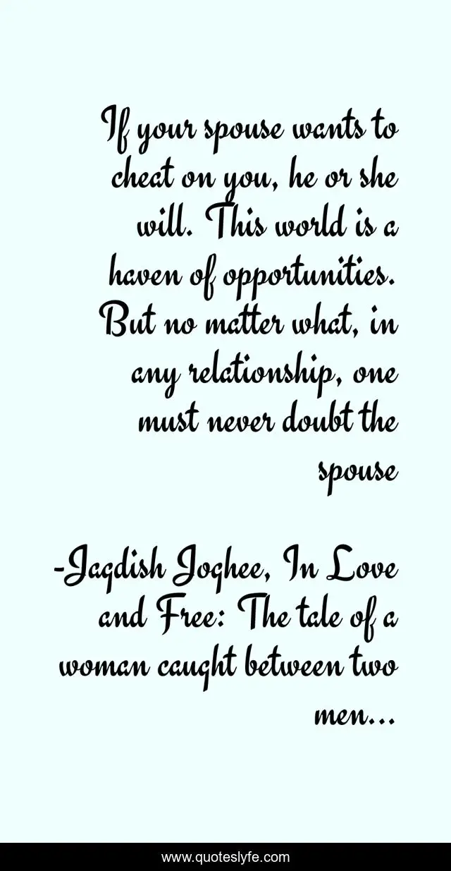 "Jagdish Joghee, In Love and Free: The tale of a woman caught between two men... Quotes." Quoteslyfe.com, 2025. Fri. 05 Dec. 2025. <https://www.quoteslyfe.com/quote/If-your-spouse-wants-to-cheat-on-77008>.