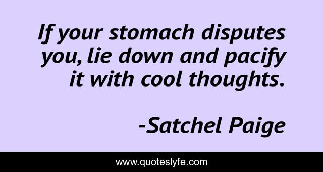 This page presents the quote "If your stomach disputes you, lie down and pacify it with cool thoughts.". Author of this quote is Satchel Paige. This quote is about lie, thoughts,.