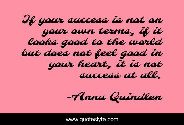 This page presents the quote "If your success is not on your own terms, if it looks good to the world but does not feel good in your heart, it is not success at all.". Author of this quote is Anna Quindlen. .