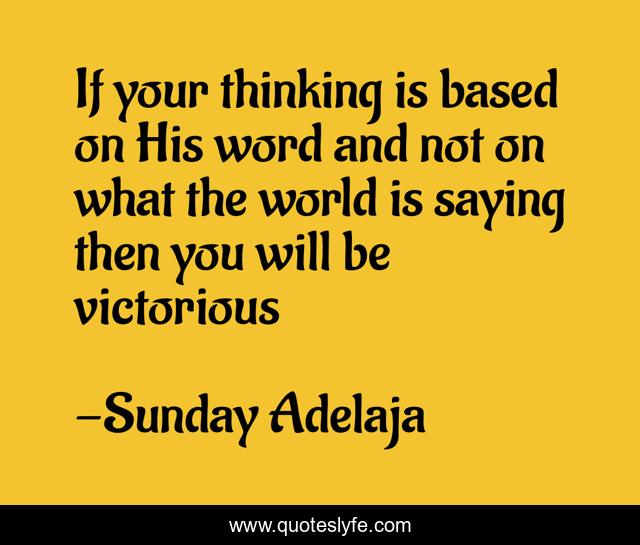 This page presents the quote "If your thinking is based on His word and not on what the world is saying then you will be victorious". Author of this quote is Sunday Adelaja. This quote is about thinking, saying, victorious, word, world,.