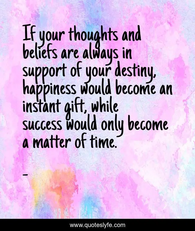 If your thoughts and beliefs are always in support of your destiny, happiness would become an instant gift, while success would only become a matter of time.