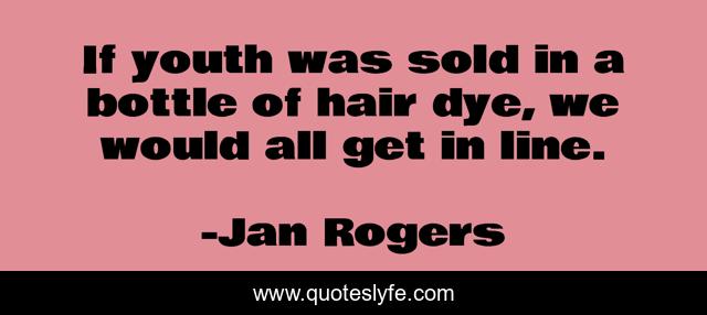 This page presents the quote "If youth was sold in a bottle of hair dye, we would all get in line.". Author of this quote is Jan Rogers. This quote is about hair-dye, age, gray-hair, youthfulness,.