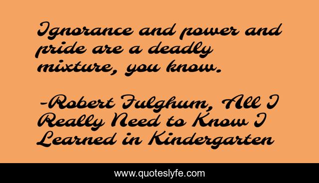 This page presents the quote "Ignorance and power and pride are a deadly mixture, you know.". Author of this quote is Robert Fulghum, All I Really Need to Know I Learned in Kindergarten. This quote is about pride, ignorance, power,.