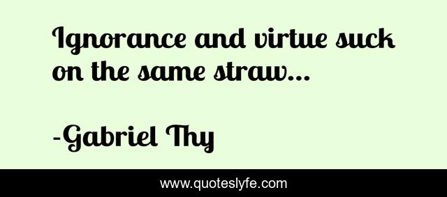 This page presents the quote "Ignorance and virtue suck on the same straw...". Author of this quote is Gabriel Thy. .
