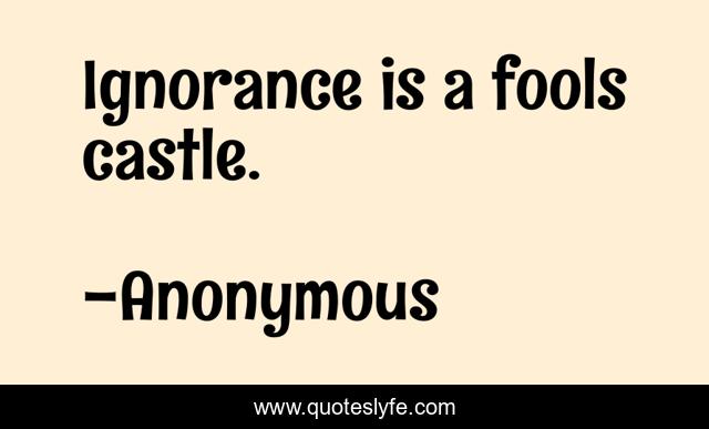 "Anonymous Quotes." Quoteslyfe.com, 2025. Mon. 08 Dec. 2025. <https://www.quoteslyfe.com/quote/Ignorance-is-a-fools-castle-90540>.