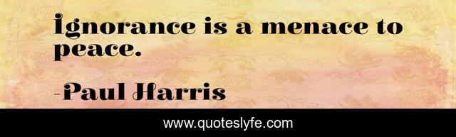 This page presents the quote "Ignorance is a menace to peace.". Author of this quote is Paul Harris. This quote is about menace, ignorance,.