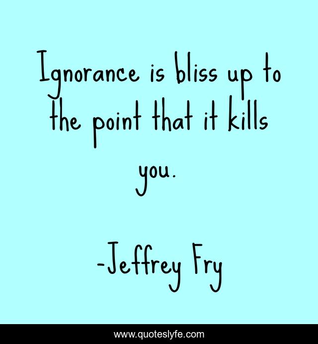 This page presents the quote "Ignorance is bliss up to the point that it kills you.". Author of this quote is Jeffrey Fry. This quote is about kills, bliss, ignorance, up-to, point,.