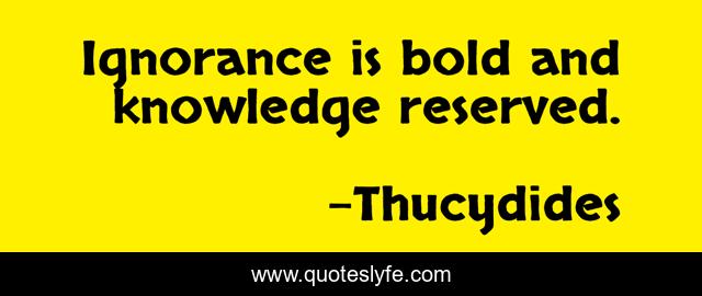 "Thucydides Quotes." Quoteslyfe.com, 2025. Sun. 07 Dec. 2025. <https://www.quoteslyfe.com/quote/Ignorance-is-bold-and-knowledge-reserved-298264>.