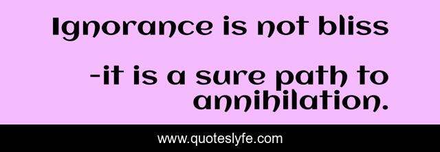 "it is a sure path to annihilation. Quotes." Quoteslyfe.com, 2025. Mon. 08 Dec. 2025. <https://www.quoteslyfe.com/quote/Ignorance-is-not-bliss-211890>.