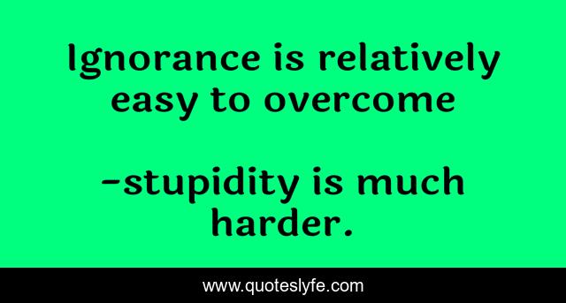 "stupidity is much harder. Quotes." Quoteslyfe.com, 2025. Fri. 05 Dec. 2025. <https://www.quoteslyfe.com/quote/Ignorance-is-relatively-easy-to-overcome-166485>.
