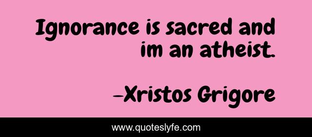 This page presents the quote "Ignorance is sacred and im an atheist.". Author of this quote is Xristos Grigore. .