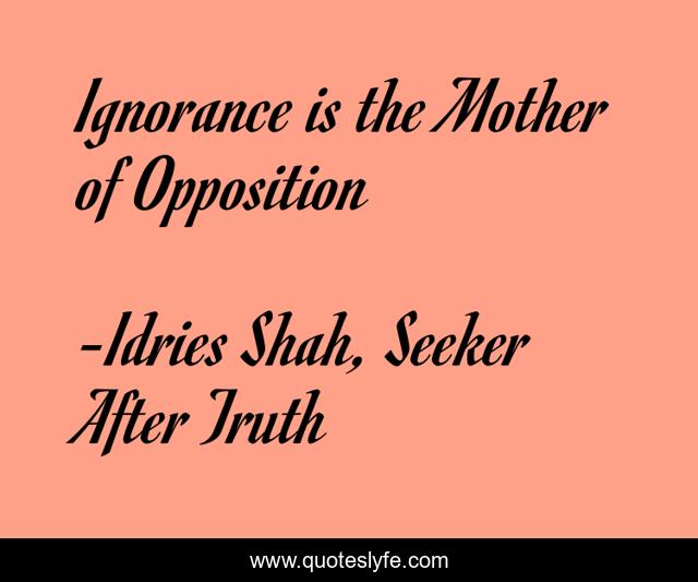 "Idries Shah, Seeker After Truth Quotes." Quoteslyfe.com, 2025. Mon. 08 Dec. 2025. <https://www.quoteslyfe.com/quote/Ignorance-is-the-Mother-of-Opposition-166559>.