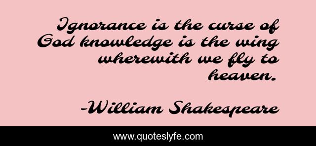 This page presents the quote "Ignorance is the curse of God knowledge is the wing wherewith we fly to heaven.". Author of this quote is William Shakespeare. This quote is about fly, knowledge, ignorance,.