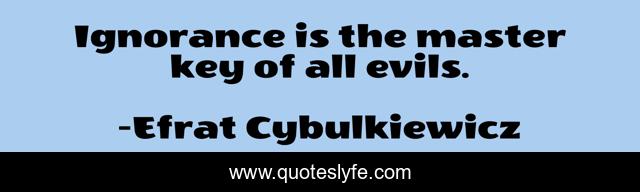 This page presents the quote "Ignorance is the master key of all evils.". Author of this quote is Efrat Cybulkiewicz. This quote is about self-love, self-respect, wise, ignorance, evil, wisdom, self-realization, knolwedge,.