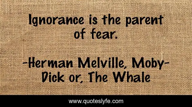 "Herman Melville, Moby-Dick or, The Whale Quotes." Quoteslyfe.com, 2025. Sun. 07 Dec. 2025. <https://www.quoteslyfe.com/quote/Ignorance-is-the-parent-of-fear-33349>.