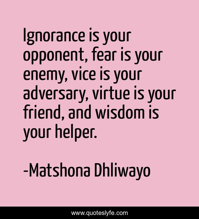 "Matshona Dhliwayo Quotes." Quoteslyfe.com, 2025. Mon. 08 Dec. 2025. <https://www.quoteslyfe.com/quote/Ignorance-is-your-opponent-fear-is-your-58131>.