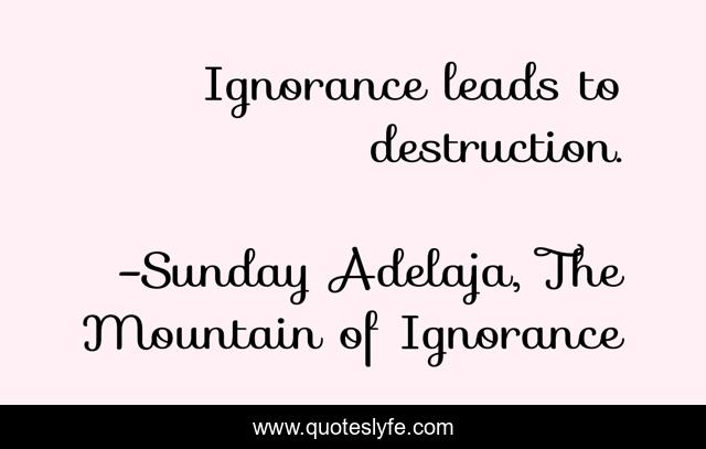 This page presents the quote "Ignorance leads to destruction.". Author of this quote is Sunday Adelaja, The Mountain of Ignorance. This quote is about mountain, life, darkness, power, danger, god, people, ignorance, light,.