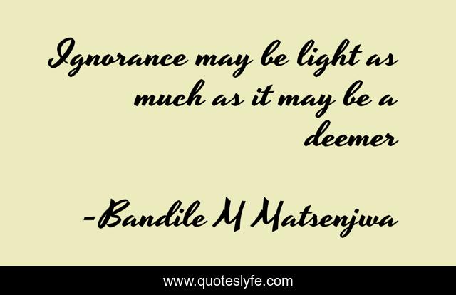 "Bandile M Matsenjwa Quotes." Quoteslyfe.com, 2025. Sat. 06 Dec. 2025. <https://www.quoteslyfe.com/quote/Ignorance-may-be-light-as-much-as-15390>.