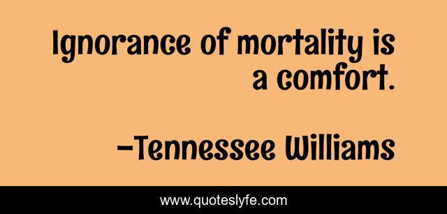 "Tennessee Williams Quotes." Quoteslyfe.com, 2025. Mon. 08 Dec. 2025. <https://www.quoteslyfe.com/quote/Ignorance-of-mortality-is-a-comfort-256274>.