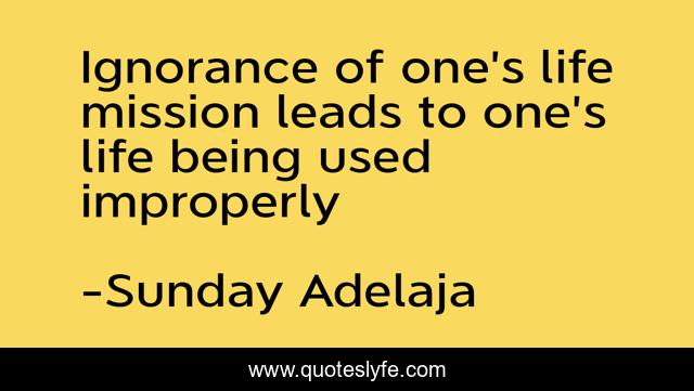 This page presents the quote "Ignorance of one’s life mission leads to one’s life being used improperly". Author of this quote is Sunday Adelaja. This quote is about life, people, mission, ignorance, abuse, purpose,.