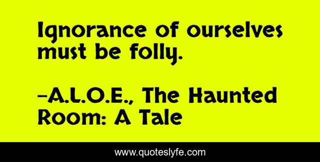 "A.L.O.E., The Haunted Room: A Tale Quotes." Quoteslyfe.com, 2025. Sat. 06 Dec. 2025. <https://www.quoteslyfe.com/quote/Ignorance-of-ourselves-must-be-folly-280947>.