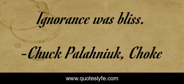 "Chuck Palahniuk, Choke Quotes." Quoteslyfe.com, 2025. Sat. 06 Dec. 2025. <https://www.quoteslyfe.com/quote/Ignorance-was-bliss-166467>.