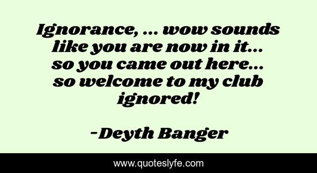 This page presents the quote "Ignorance, ... wow sounds like you are now in it... so you came out here... so welcome to my club ignored!". Author of this quote is Deyth Banger. This quote is about club, ignore, welcome, my, ignorance,.