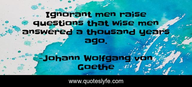 This page presents the quote "Ignorant men raise questions that wise men answered a thousand years ago.". Author of this quote is Johann Wolfgang von Goethe. This quote is about men, wise, questions,.