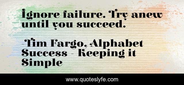 "Tim Fargo, Alphabet Success - Keeping it Simple Quotes." Quoteslyfe.com, 2025. Fri. 05 Dec. 2025. <https://www.quoteslyfe.com/quote/Ignore-failure-Try-anew-until-you-succeed-145270>.