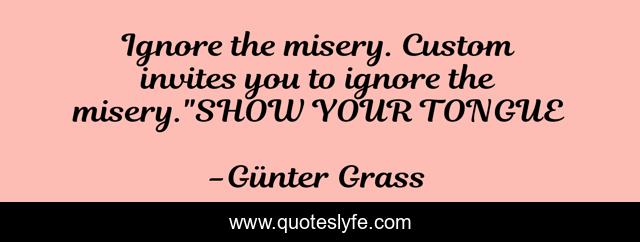This page presents the quote "Ignore the misery. Custom invites you to ignore the misery."SHOW YOUR TONGUE". Author of this quote is Günter Grass. .