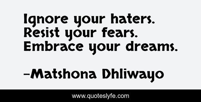 "Matshona Dhliwayo Quotes." Quoteslyfe.com, 2025. Sun. 07 Dec. 2025. <https://www.quoteslyfe.com/quote/Ignore-your-haters-Resist-your-fears-Embrace-58303>.